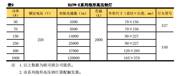 表19—表21为中显示高压钠灯和高显色高压钠灯技术数据。