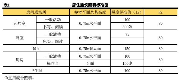 (一)居住建筑照明标准值